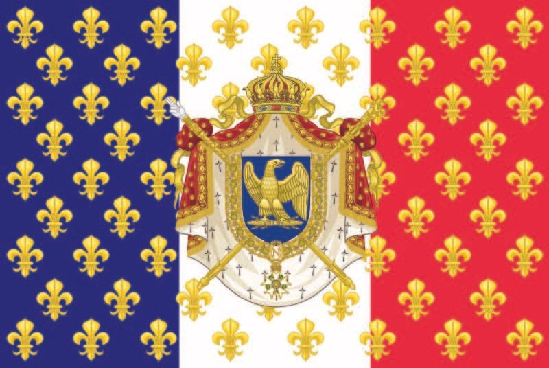 Le bleu, le blanc, le rouge, qui rappellent le début du XIX ème, une période glorieuse pour la France où le drapeau tricolore a fait le tour d'Europe avec l'Empire Napoléonien etc et les armoiries Royales avec les trois fleurs de Lys, symbole de la France millénaire