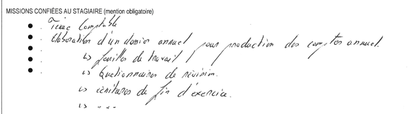 Ceux qui on déjà fait ce type de stage en cabinet vous avez mis quoi dans l'annexe ? Et au final vous avez fait quoi comme travail (lettrage, rapprochement bancaire, saisie...) ?