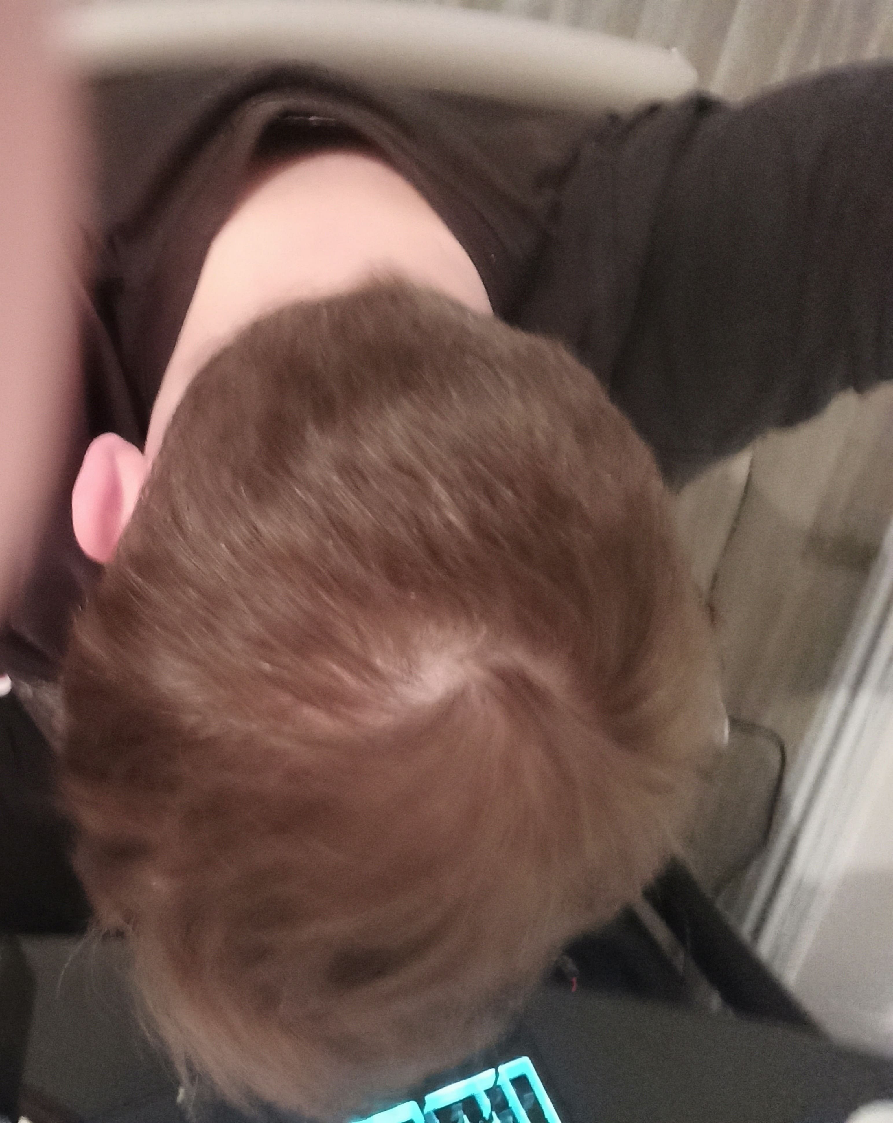 0 calvitie, juste une implantation + densité de merde. Mon frère à pareil à 32 ans depuis ses 10 ans