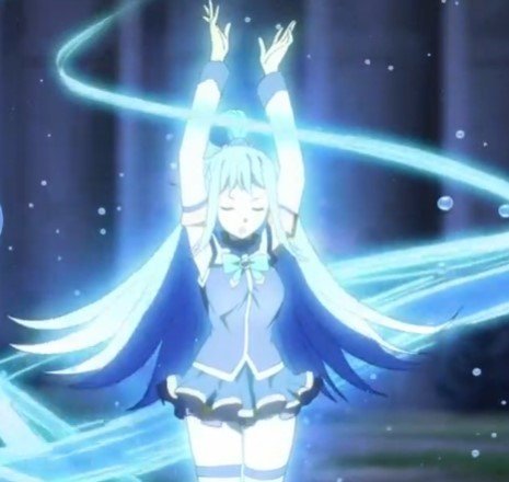 Mais une rune verte se forme aux pieds d'Aqua, elle disparaît dans une explosion cylindrique.