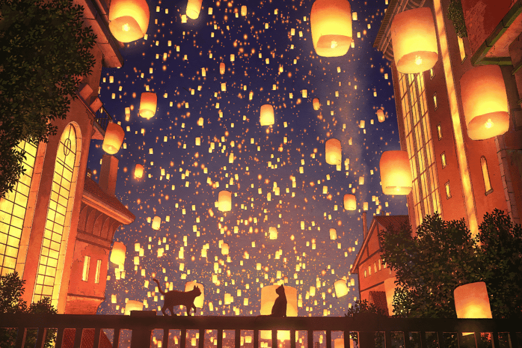 Vous regardez les feux d'artifice éclater en l'air, ils sont bien moins impressionnants que ceux du monde réel, mais ça faisait longtemps que vous n'aviez pas apprécié le ciel nocturne.