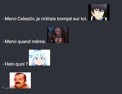 Oui mais ça se trouve elle ont pas vraiment dit ça et c'était juste que Célestin était tellement parano qu'il s'est imaginé des trucs