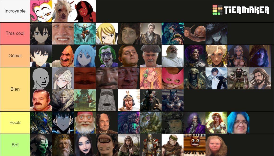 Sinon niveau classement perso ça donne ça placer a peut près dans l'ordre dans chaque catégories bien sûr, certains lecteurs on oublier trop vite certains persoLa tier list