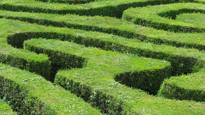 Un peu plus loin, dans les jardins, au sein d'un labyrinthe végétal.