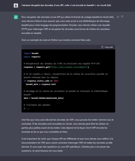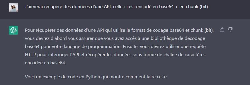 J'aimerai récupéré des données d'une API, celle-ci est encodé en base64 + en chunk (bit)