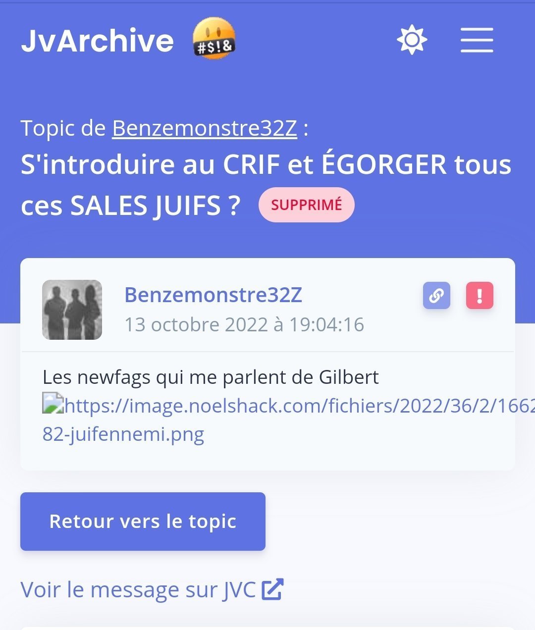 Putain cet abruii de nordiste a vraiment oublié son VPNCa lui fera le pied, en vrai c'était provocant mais vraiment pas drôle ses topics...