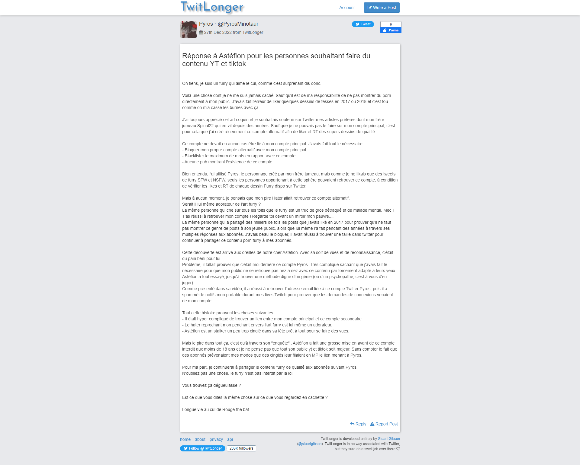 Asterion fait partie de la commu Furry , les bras m'en tombent