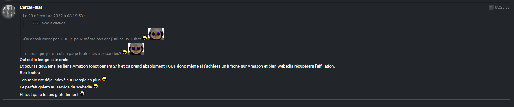Le 23 décembre 2022 à 08:10:50 CercleFinal a écrit :