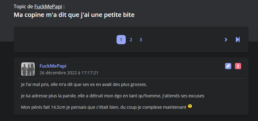 Ce forum est le plus grand représentant de la frustration affective et sexuelle en France voire dans le monde entier
