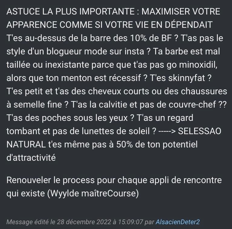 Bordel c'est sympa pour les kheys mais je pense que tout le monde connaît ça ici, ça ne leur rappelle juste la dureté de la Tinderpill![]()
