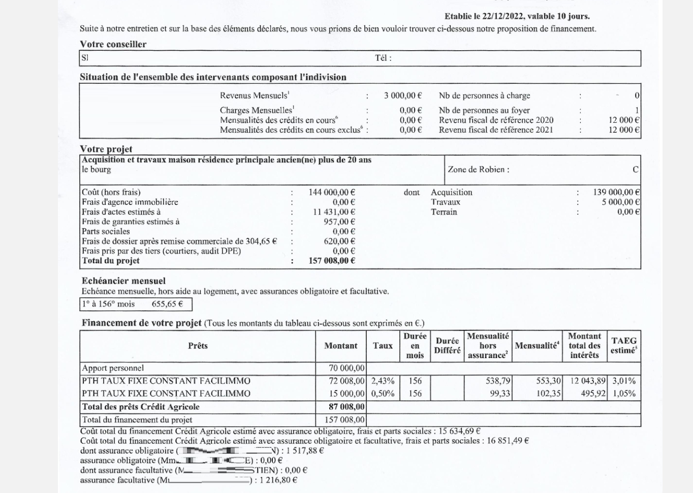 Et ne compte que le prix de la baraque et des frais de notaire. Osef des meubles, ils entrent pas dans le crédit