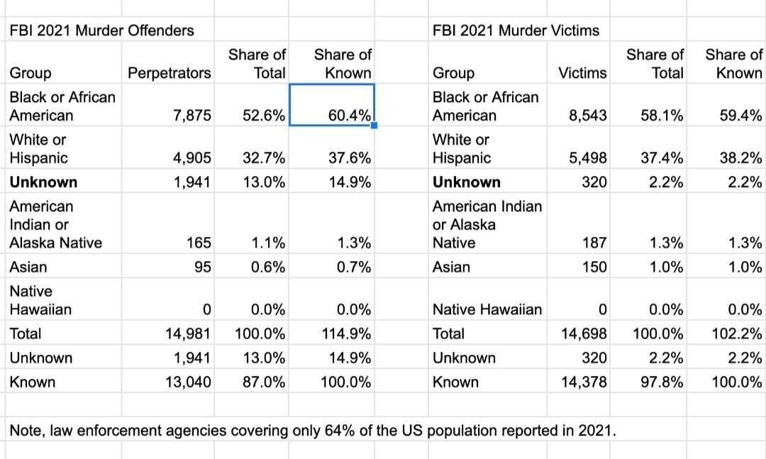 ils ont commis 60.4% des crimes en 2021 en étant 13% de la population.
