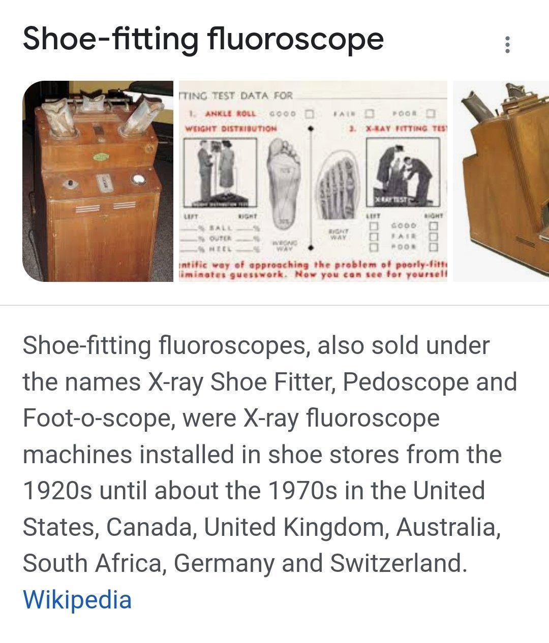 1920 : Hihi venez mettre vos pieds dans des boites à rayon X (fluoroscope) pour essayer vos chaussures, le consensus scientifique est UNANIME, il n'y a aucun effet grave à long terme