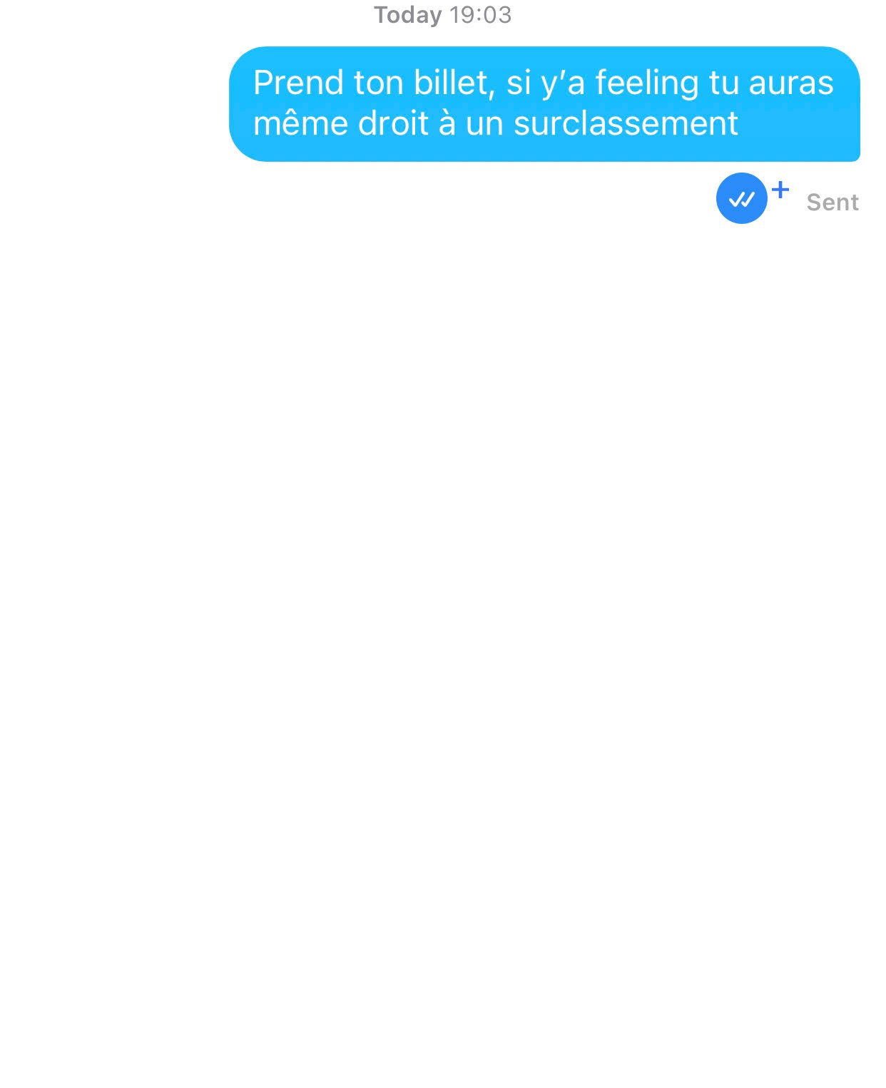 "Prend ton billet, si tu es sage tu auras même un surclassement"