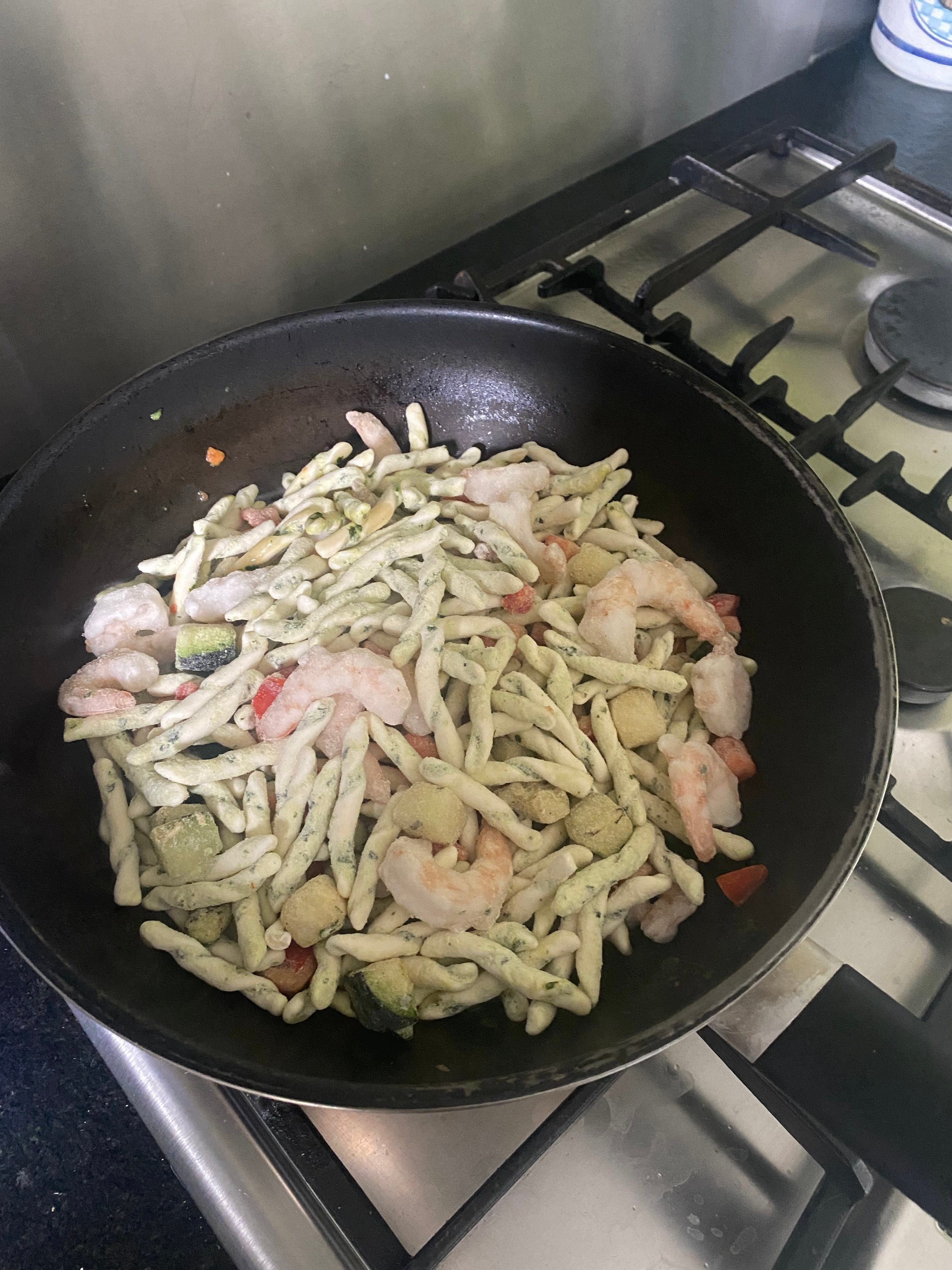 Les quilles je viens de découvrir les pâtes aux crevettes sauce basilic Une véritable dinguerie ! Le plat gourmet en question En casserole ! Et une fois dans l’assiette, vous avez votre plat cuisiné, digne d’un très bon restau de quartier