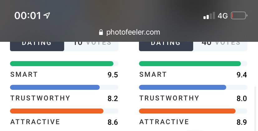 Quand c'est une 2/10 qui te note voila quoi, faudrait avoir les gueules a côté des votes aussi pour être vraiment fiable, on les connait les magalax 2/10 qui disent que chad est immonde
