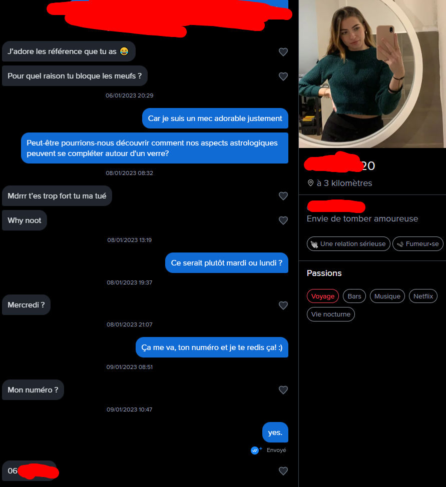 Sur mes début de Tinder, par excitation j'ai fais 4 dates juste la première semaine
