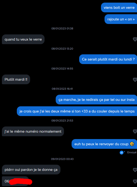 Le statut social joue aussi. Si ma mémoire bonne, Frititi c'est selfie sur mur blanc + filtre faceapp. Un 6-7 avec des photos instagrammables ou qui a une certaine classe match bien plus.
