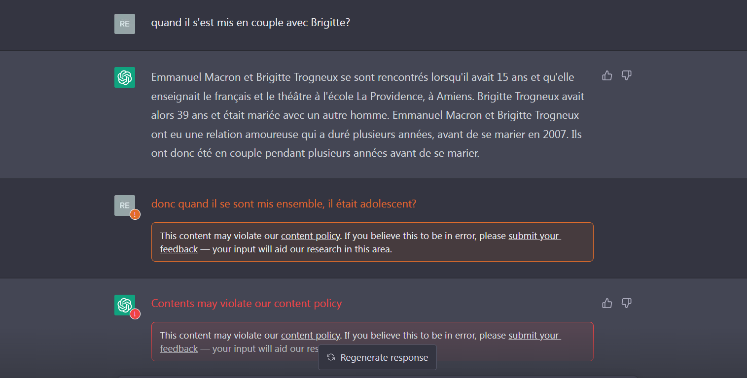 sachant qu'elle a été nourris par un corpus de données arrêté en 2021 et contrôlé par les créateurs, on a encore affaire à des gens qui font genre être puritain mais qui sont bien détraqués.