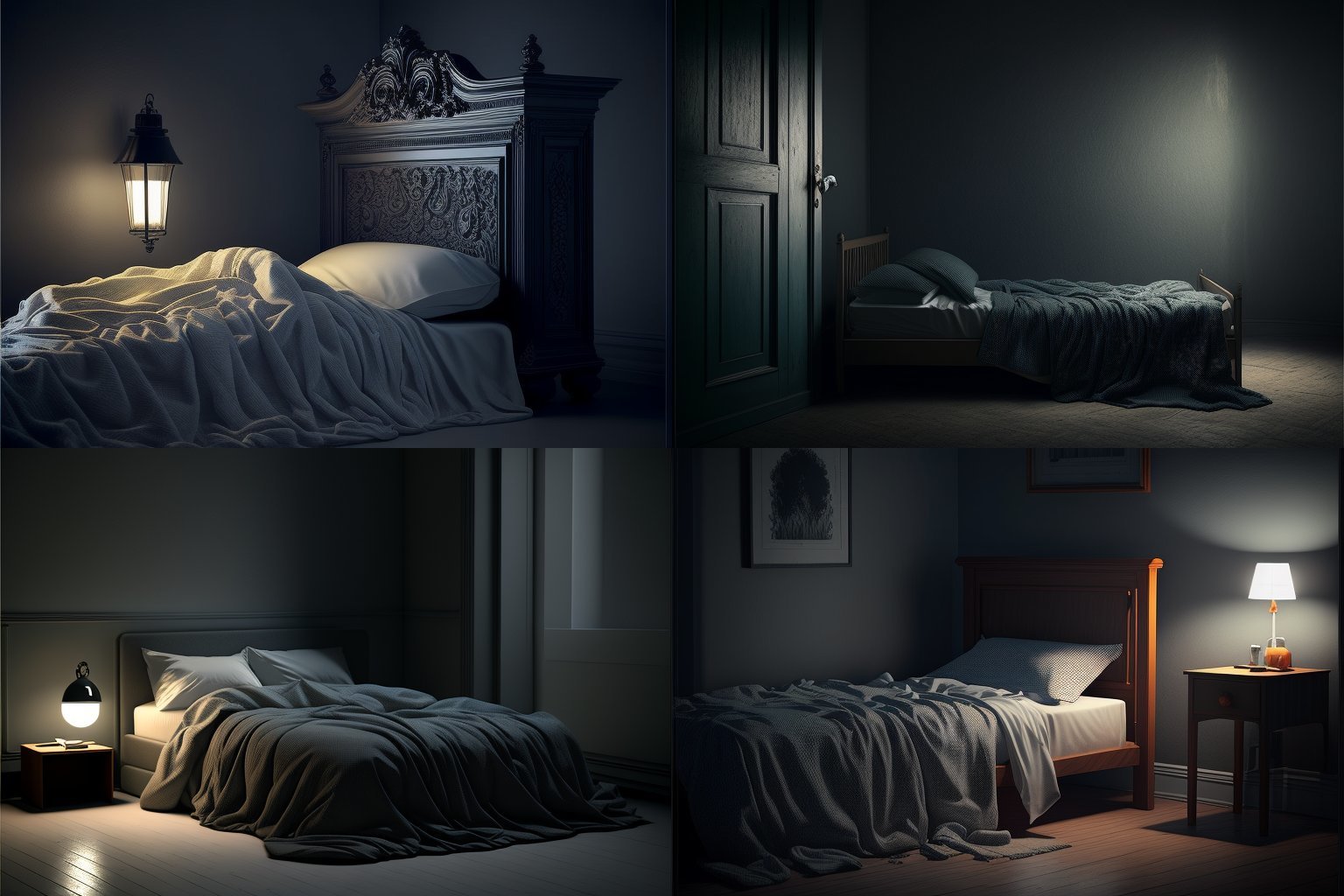 Est-ce que vous pouvez me faire un lit simple mais confortable avec un drap épais, le tout dans une chambre sombre?