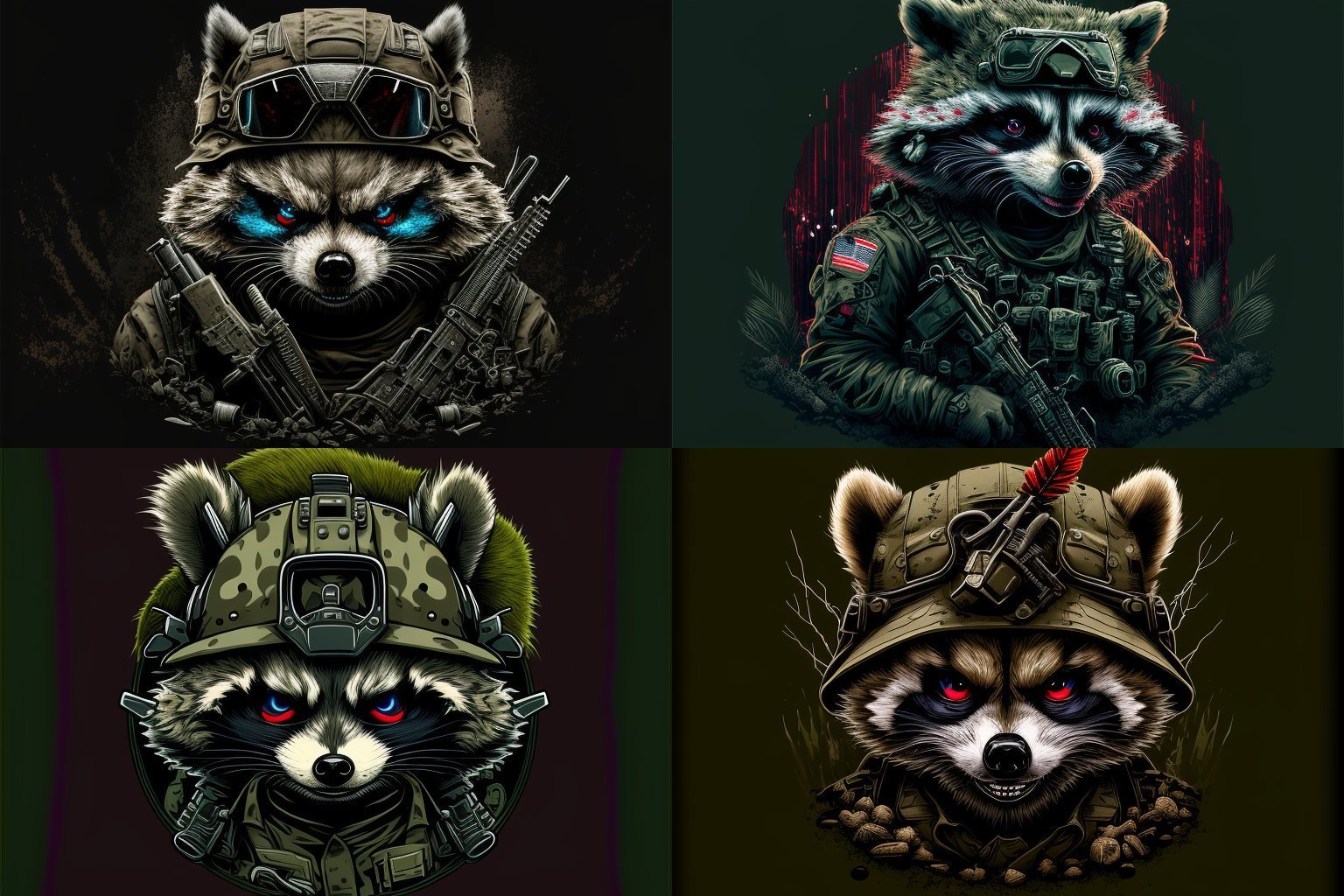 military racoon zombie, cartoon, logo, detailed, ultraquality, 32k --ar 3:2 --s 1000 --q 5