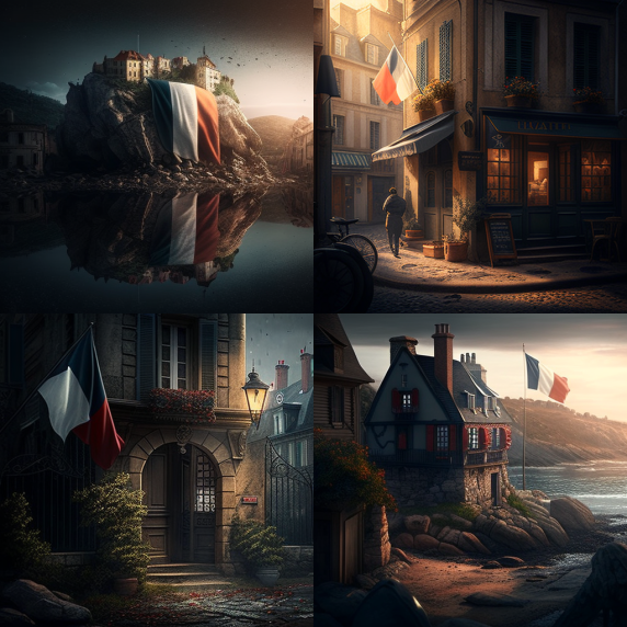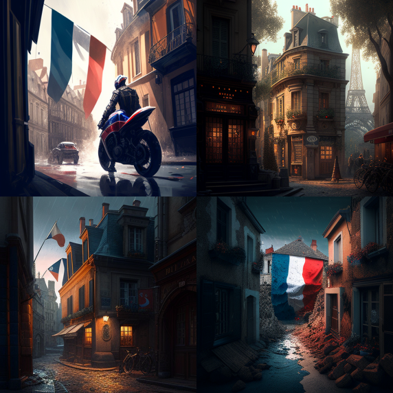 Y a quelques défauts sur certaines images mais l'idée est là, en attendant dans laissez moi vous présenter comme MidJourney voit la France : https://cdn.discordapp.com/attachments/1065260452306751512/1065620124054343710/AkaZoe_France_e800cf9e-a76b-461a-bd5f-e988d55419c1.pngsympa, par contre ce n'est pas l'unique vision que MJ peut te proposer de Paris, il peut le faire de 1000 façon