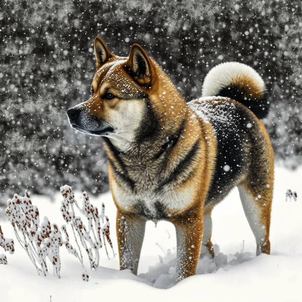 vous pouvez me faire une image avec un akita inu dans la neige ?