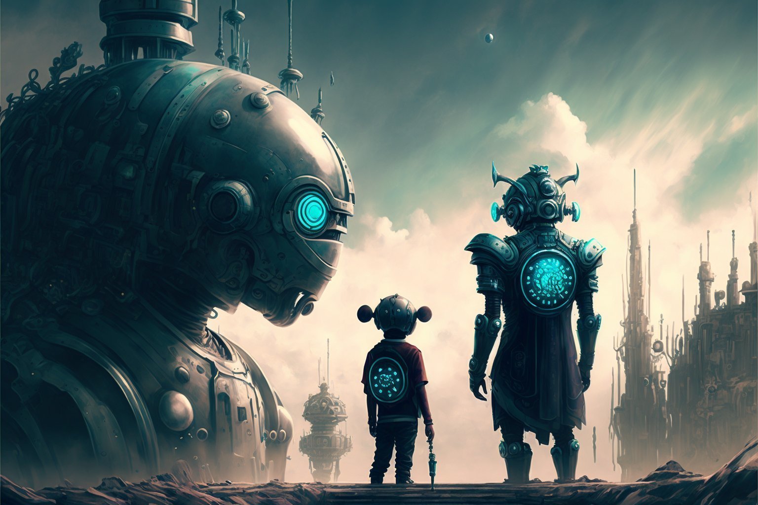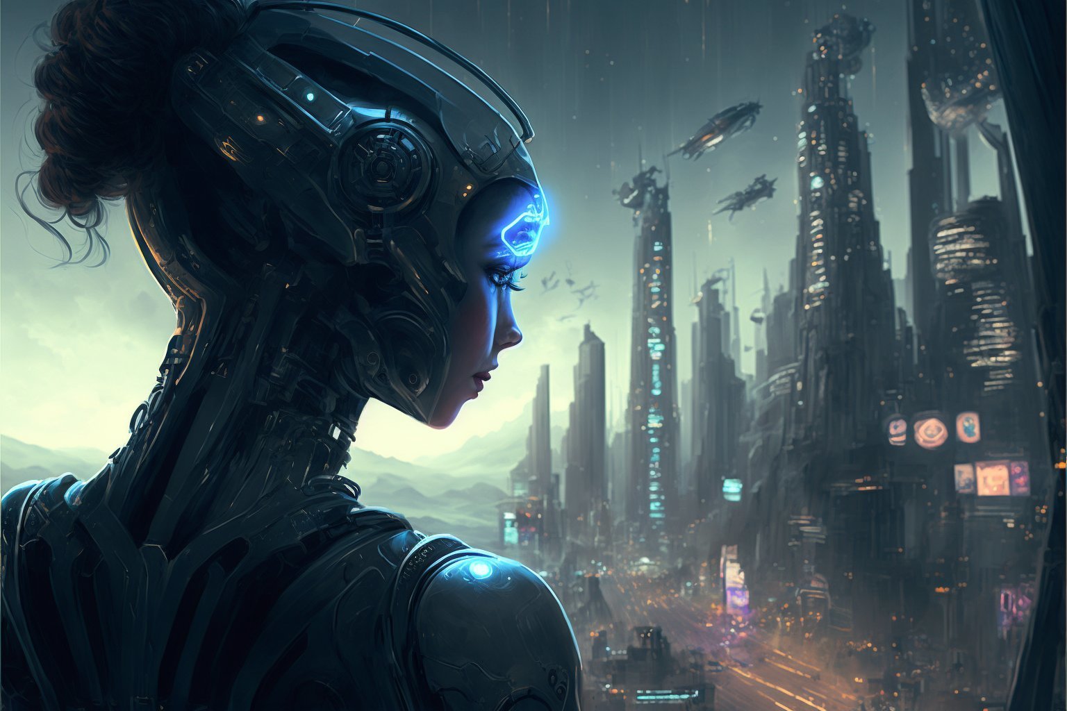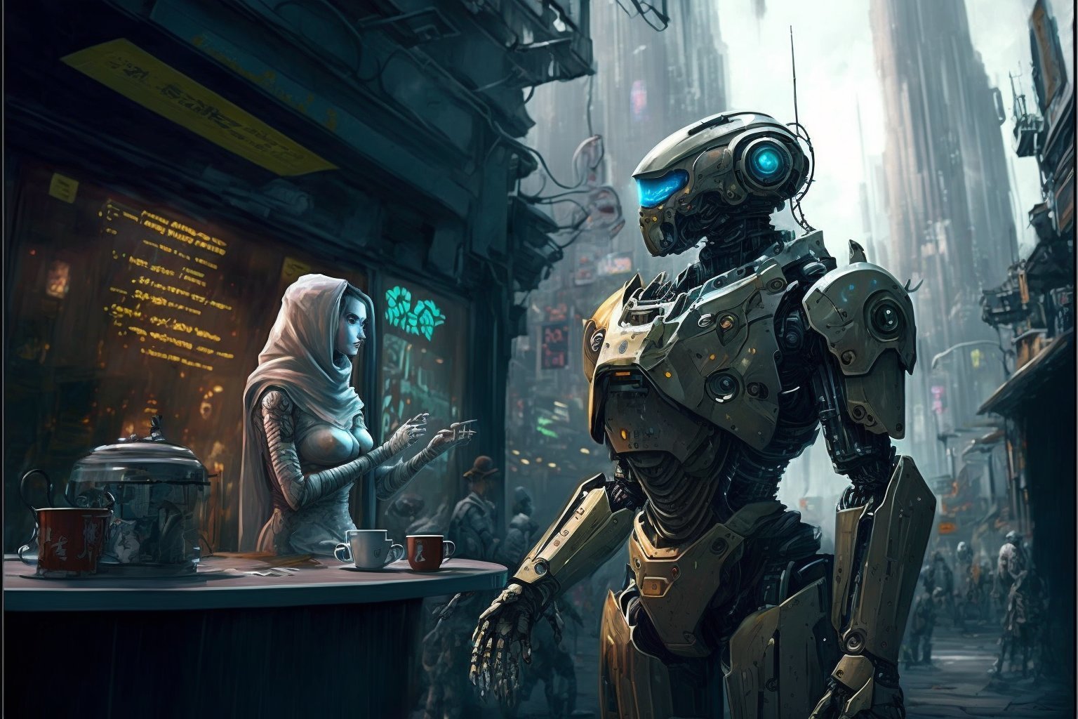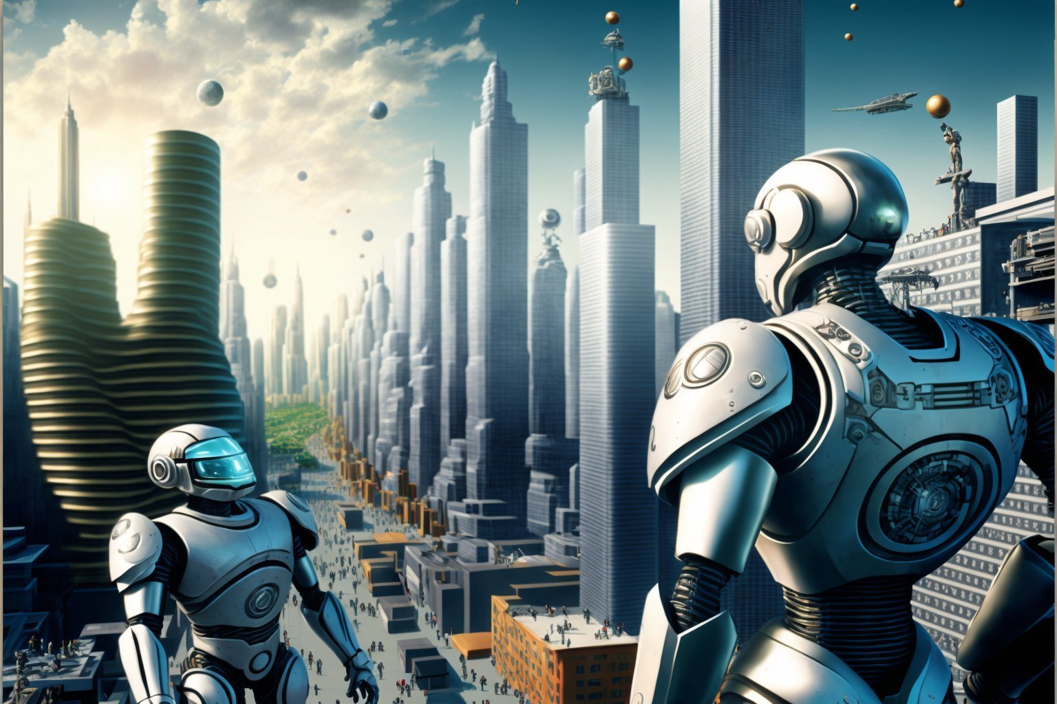 "A futuristic world where humans and robots coexist in harmony"
