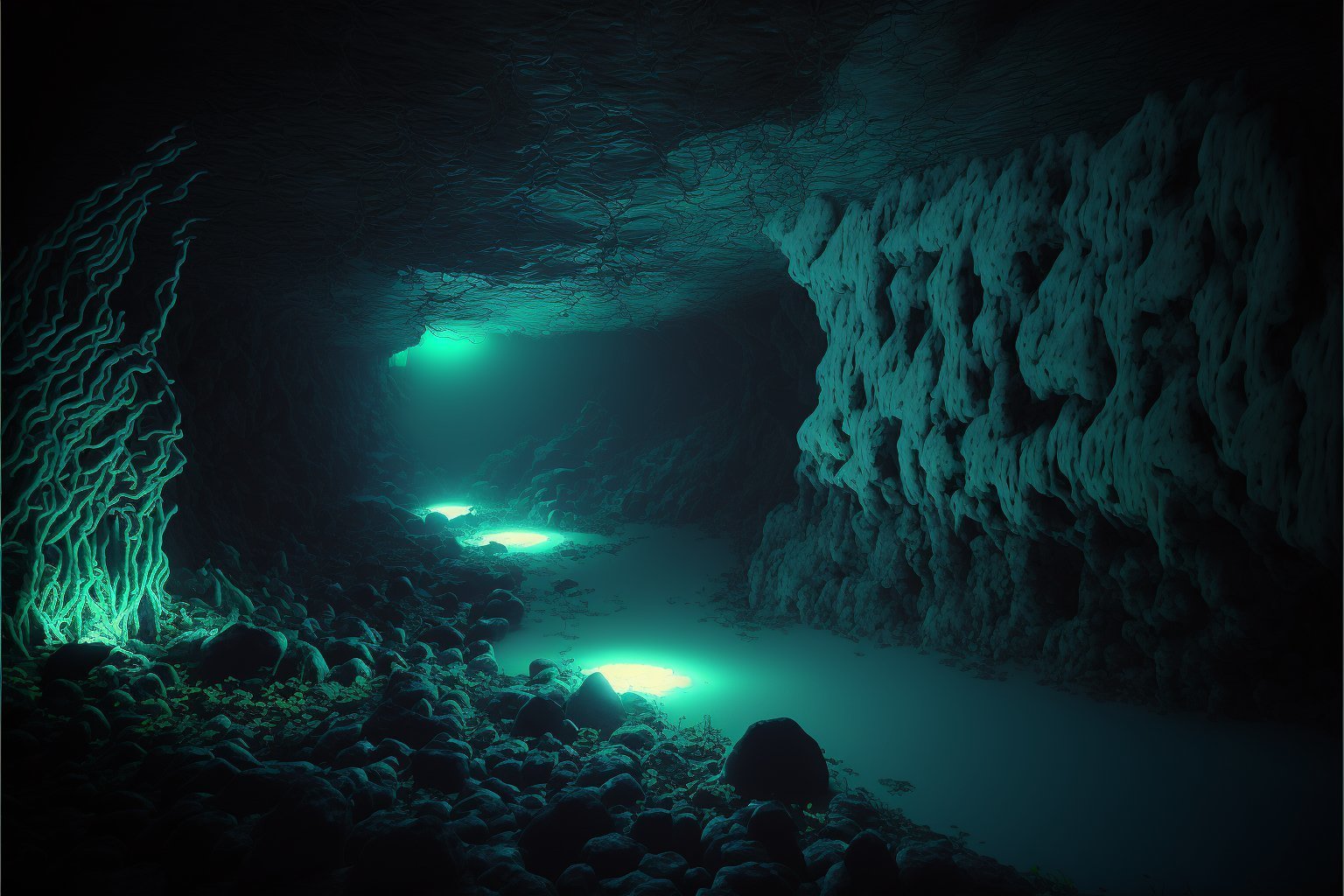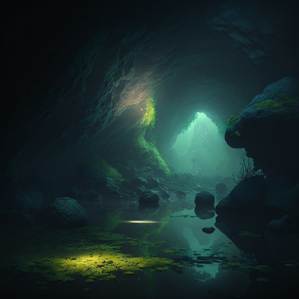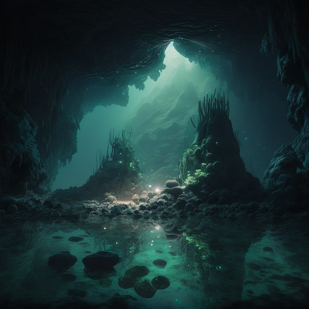 En fait il fout toujours de l'eau à la surface de la grotte donc c'est pas profond et la lumière est toujours forte. Teste des prompts bizarres genre Bioshock, SOMA, c'est des JV dans les abysses.