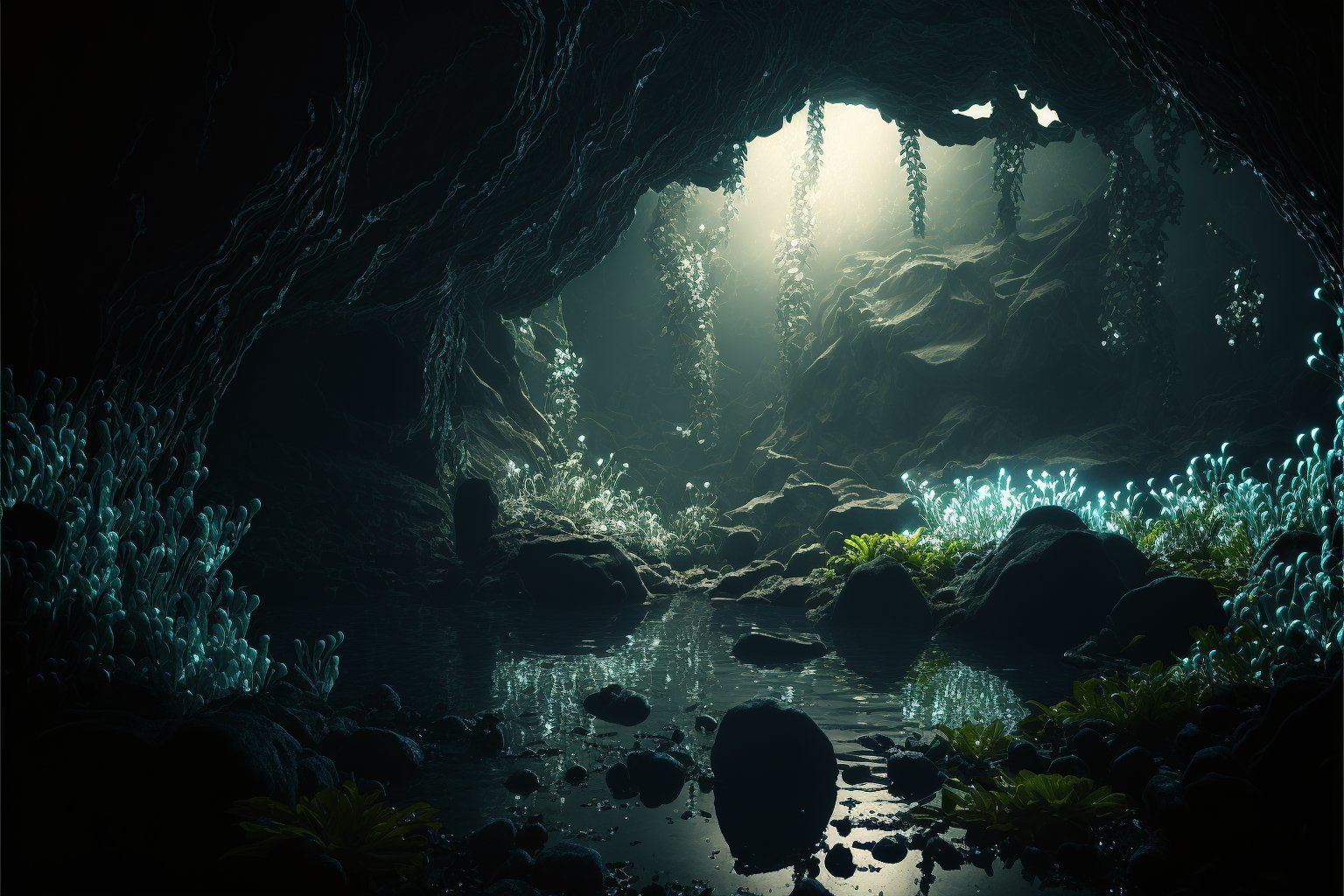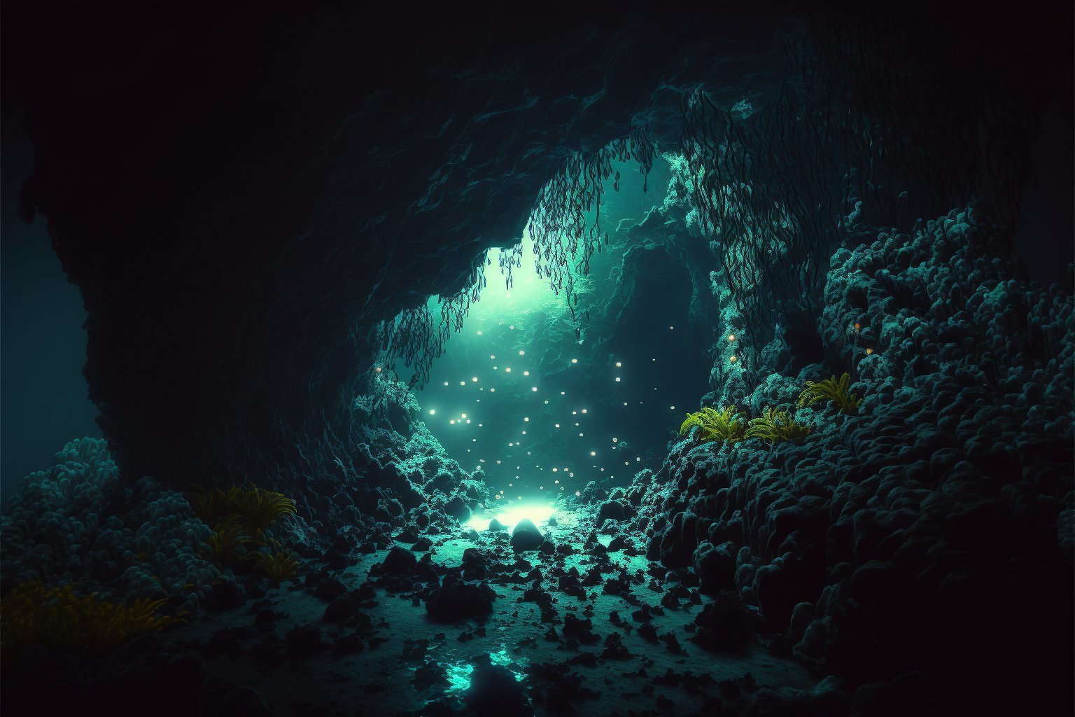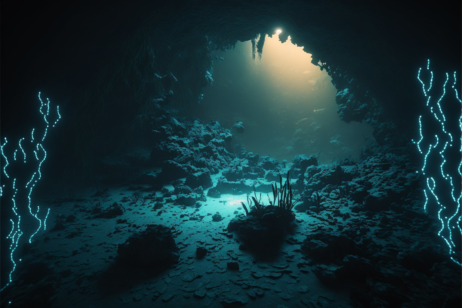 En fait il fout toujours de l'eau à la surface de la grotte donc c'est pas profond et la lumière est toujours forte. Teste des prompts bizarres genre Bioshock, SOMA, c'est des JV dans les abysses.