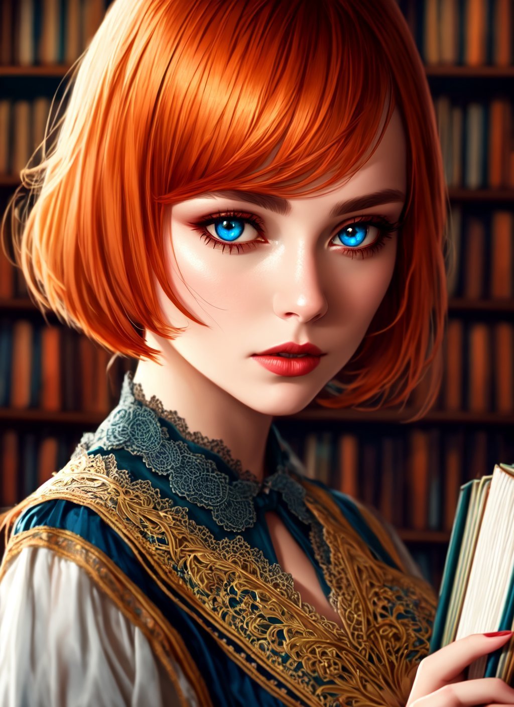 Elephant sitting on a chair and studying in a 19th century style library
