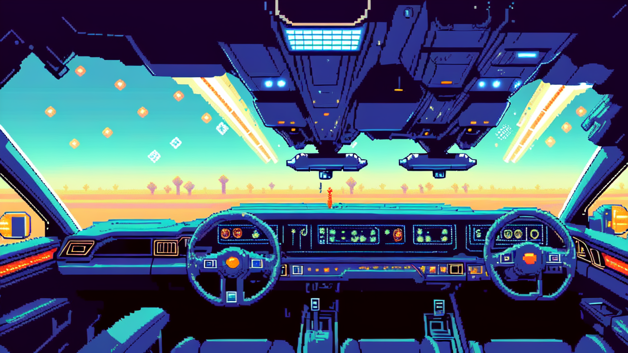 Ou encore : Spaceship dashboard, neon-lit interior, steam vents, window with space view, futuristic, cyberpunk design, metallic surfaces, holographic displays, advanced technology, dim lighting, (((focus on dashboard))),