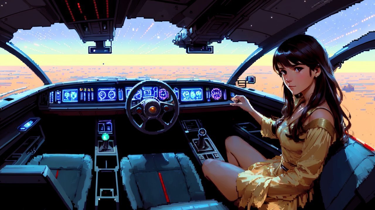> Ou encore : Spaceship dashboard, neon-lit interior, steam vents, window with space view, futuristic, cyberpunk design, metallic surfaces, holographic displays, advanced technology, dim lighting, (((focus on dashboard))),