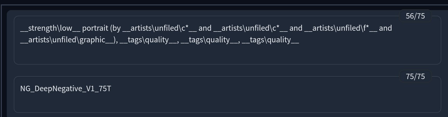 > > "lowres, text, error, extra digit, fewer digits, cropped, ugly, blurry, extra limbs, missing limbs, extra legs, missing legs, worst quality, low quality, bad hands, extra fingers, missing fingers"