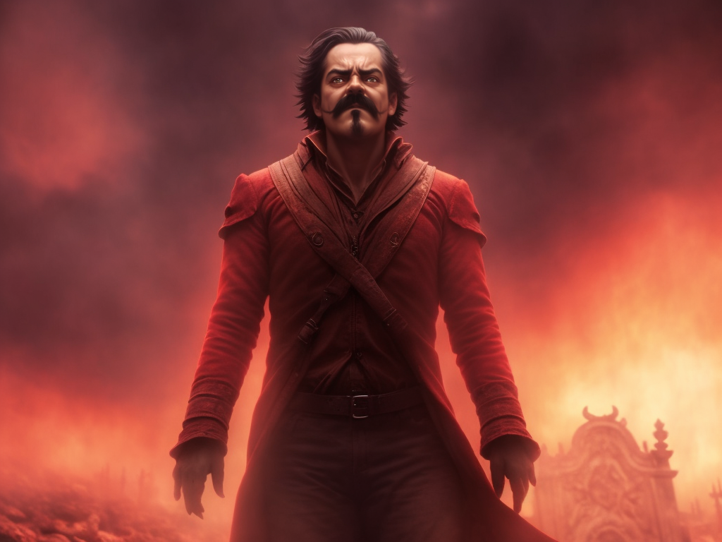 > > Inside of a dark gothic cathedral with red stained glass and black walls
