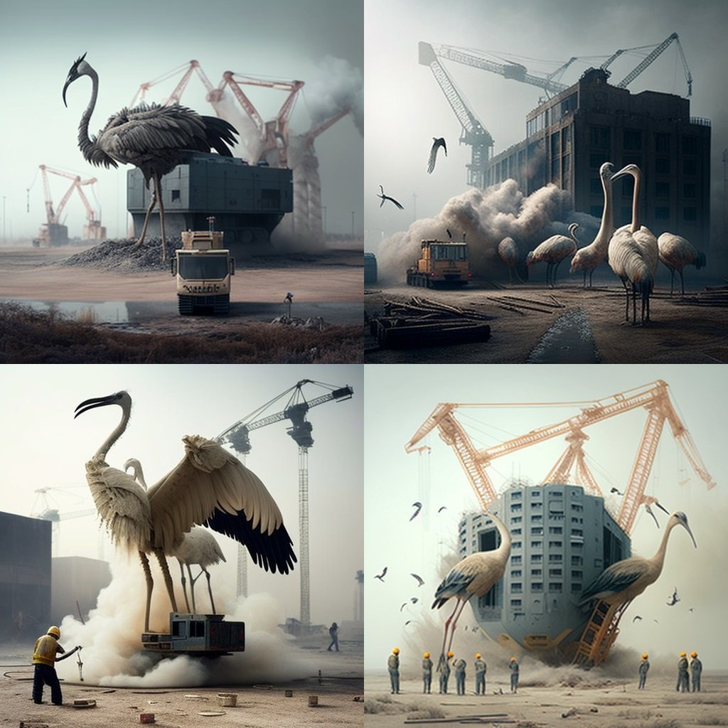 > " a chantier with some grues à vapeur, blabla