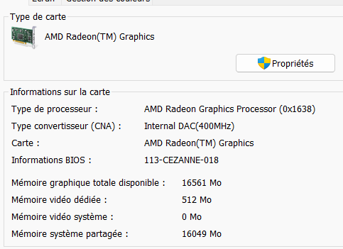 Nonobstant si c'est ce que je penses et que tu n'as que 500mb de vram, tu pourras absolument pasj'ai ce genre là à l'identique https://www.fnac.com/PC-Portable-Gaming-HP-Victus-16-e0309nf-16-1-AMD-Ryzen-7-32-Go-RAM-512-Go-SSD-Blanc-ceramique/a16970730/w-4?origin=PA_JV_LIEN