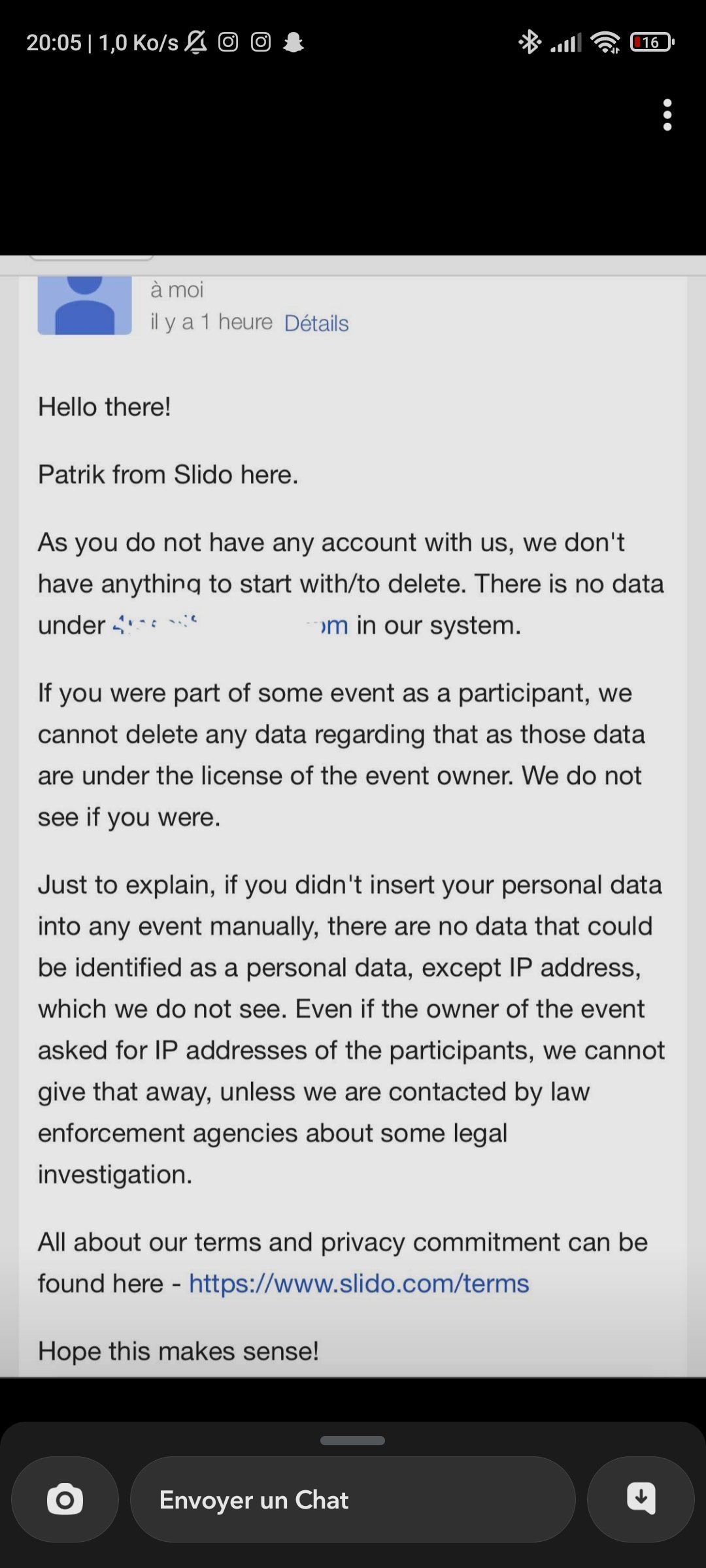 Ou à la limite ils pourraient te retrouver en faisant correspondre l'heure exacte de ta requête sur le relais et l'heure du message sur Slido.