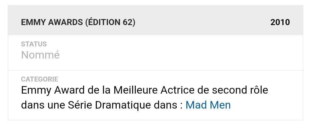 "Primetime Emmy Awards 2009 : Meilleure actrice dans une série dramatique pour Mad Men"