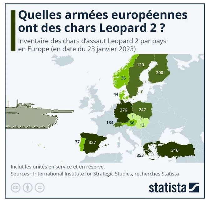 https://www.equinoxmagazine.fr/2023/01/25/lespagne-chars-en-ukraine/en mode pessimiste on peut partir sur 200 chars mais à mon avis l’Ukraine va avoir largement ce qu'elle réclame.