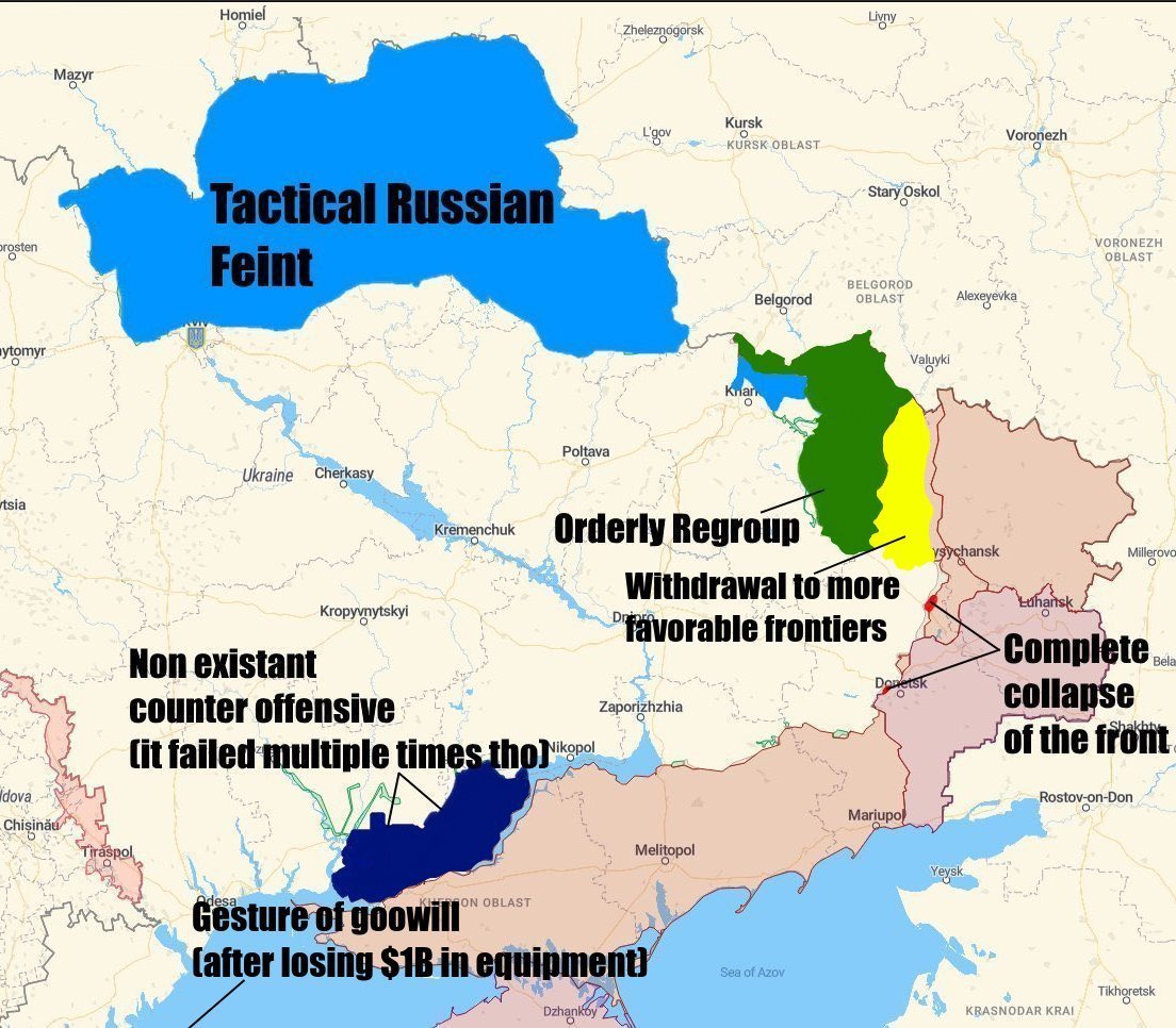 Qui a dis que l'OTAN ne s'était jamais faite humilier ? De plus ils ont gagné 4 régions sont une bonne partie été de toute façon déjà acquise avant le début de l'opération. Ca enlève rien à la débâcle au nord et au nord est. Ca enlève rien aux pertes monumental des russes. Ne vous en déplaise
