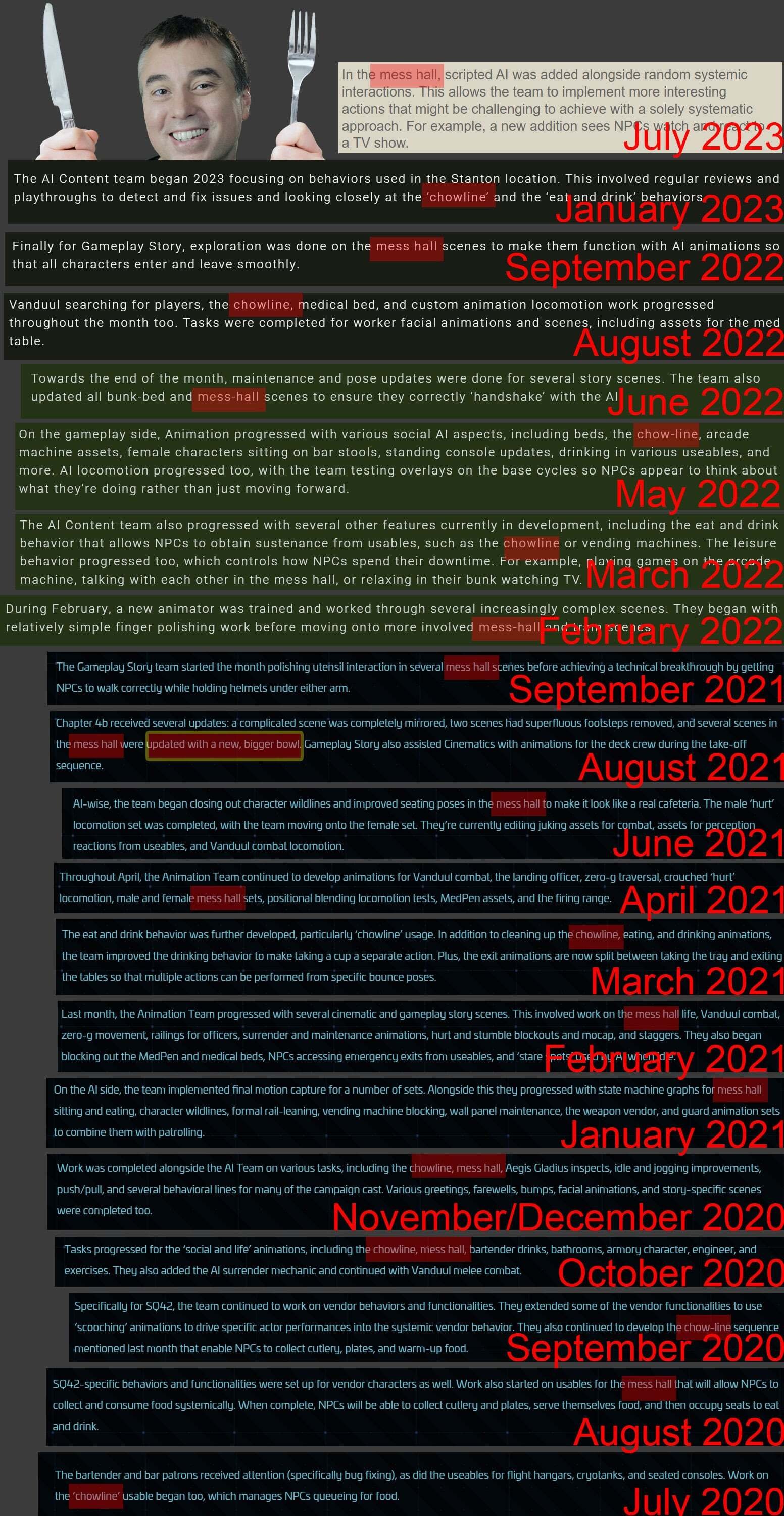 On rappelle qu'il y a 5 ans ils disaient aussi que leurs nouveaux scripts pour la cafet permettraient de simplifier le développement des PNJ, que le nouveau système d'IA serait révolutionnaire. On le voit bien, ça fait 3 ans qu'ils bouclent sur des détails infimes qui ne servent à rien