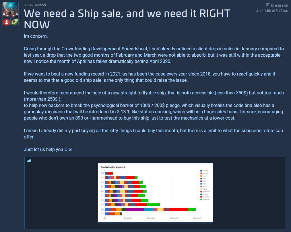 "il faut d'URGENCE que Chris Roberts vende des vaisseaux pas trop chers (<$350) mais pas trop bon marché (>$250) pour encourager les nouveaux à briser la barrière psychologique des $100"