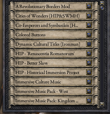 HIP ou " Historical Immersion Project " est un mod sur CK2, plus complexe que le jeu de base, rajoute des centaines de provinces, des mécaniques et plusieurs évènements