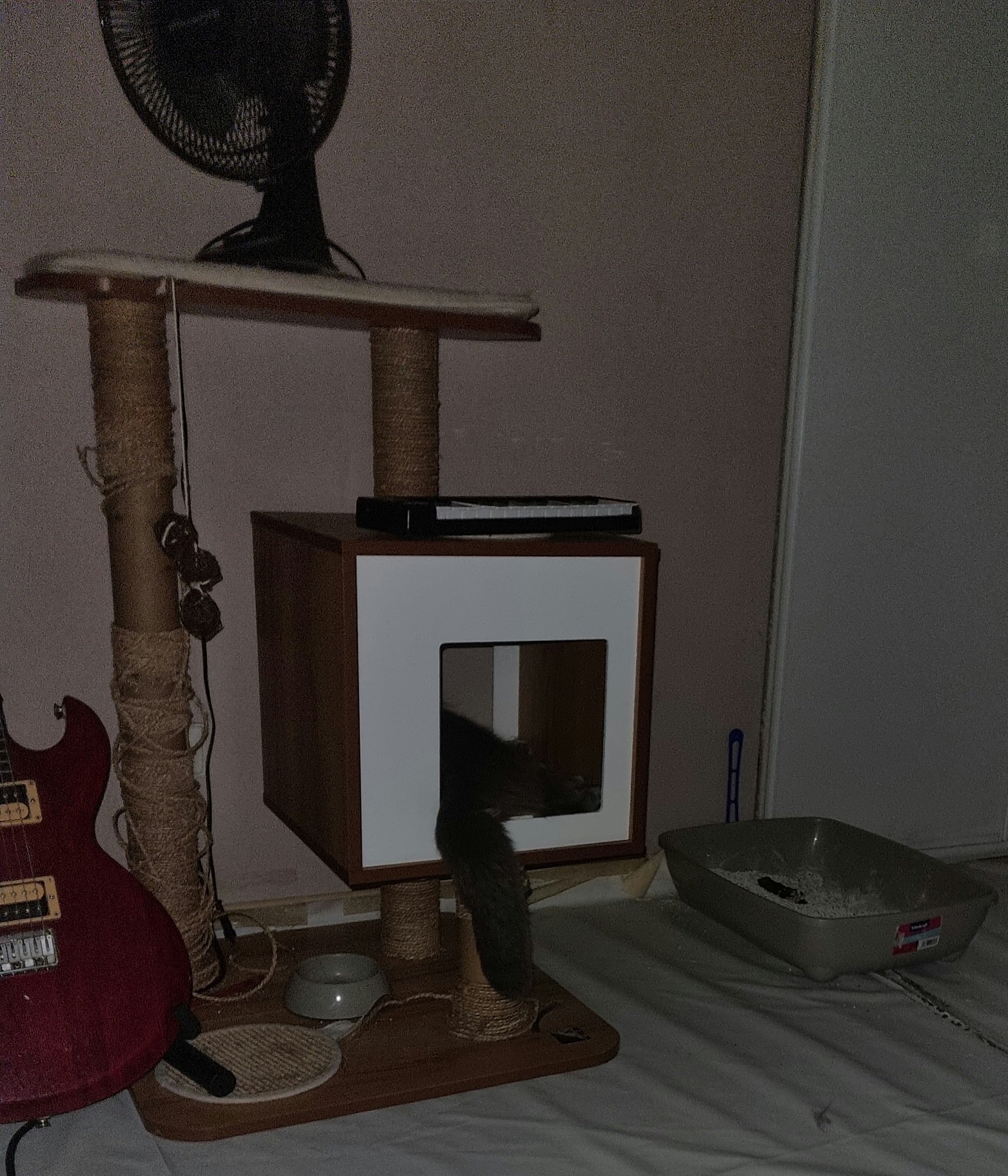>dégueulasse + litière dans ma chambre que je change une fois toutes les 2 semaines