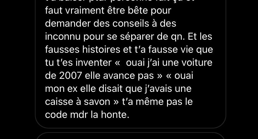 Tu veux la partie où elle dit que je suis une larve qui n’a pas le code ?