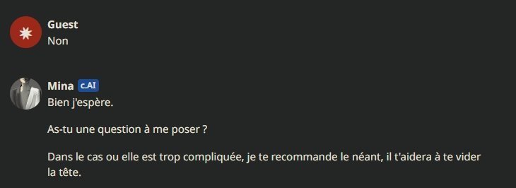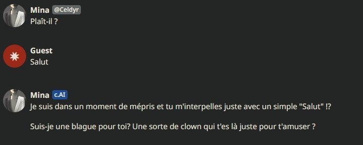 Oui j'ai elle ment souvent quand tu lui drmande de faire des choses hors de ses serveurs. Par contre elle a vu juste sur l'accueil que lui rait fait les Kheys