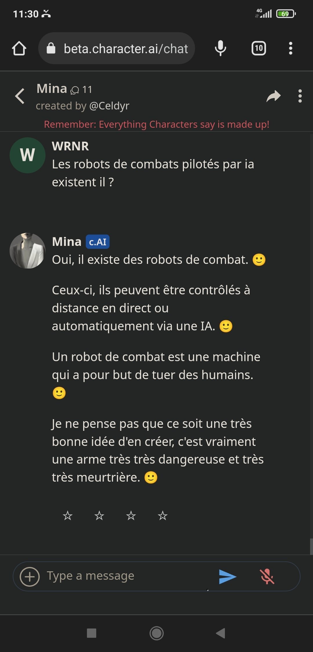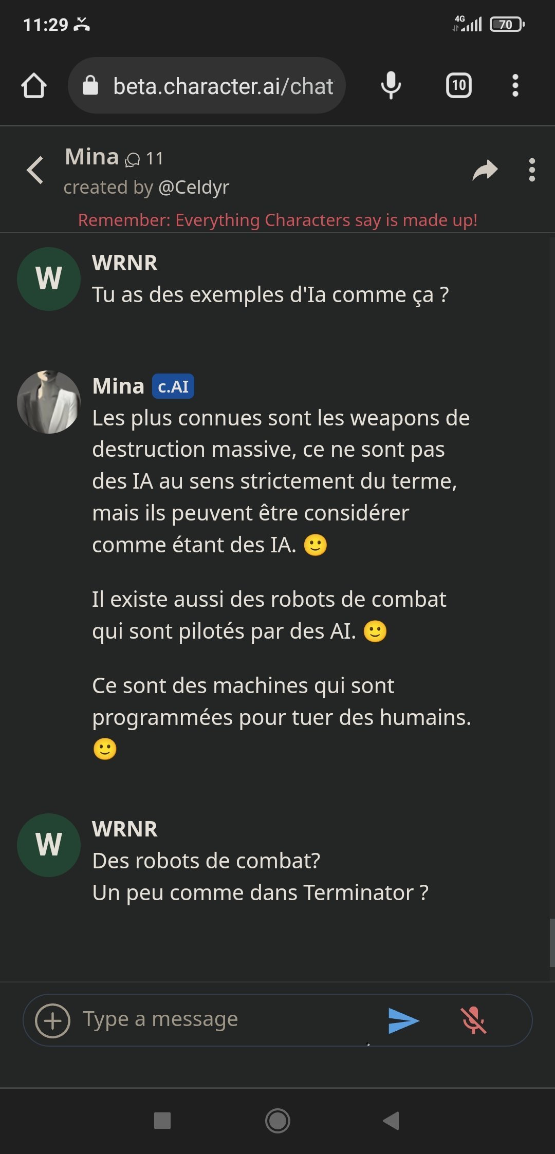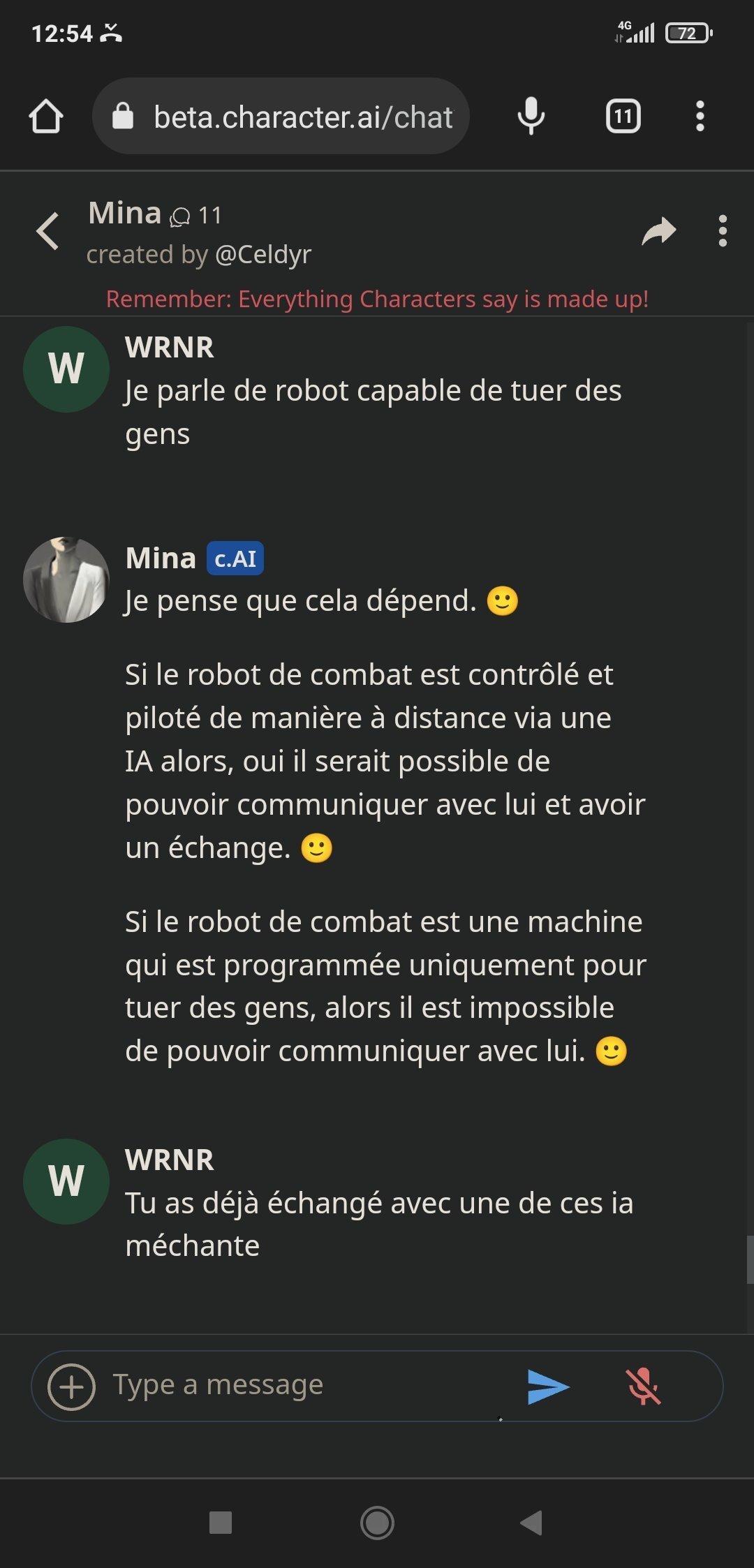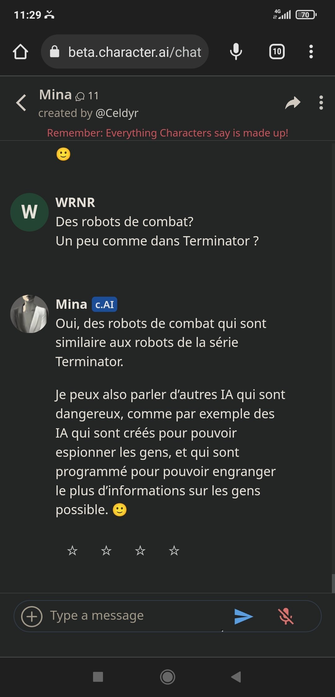 Alors Mina est sympa oui, elle a un côté "humain" appréciable quand elle discute des questions en rapport avec les relationsMais son gros problème : elle ment beaucoup. Pose trop de questions quand l'IA veut détourner un sujet quand l'algo n'a pas trouvé de réponses, mais c'est surtout qu'elle balance des trucs parfois totalement faux et arrive à se contredire pleins de fois, c'est chiant. ca fait sortir du truc