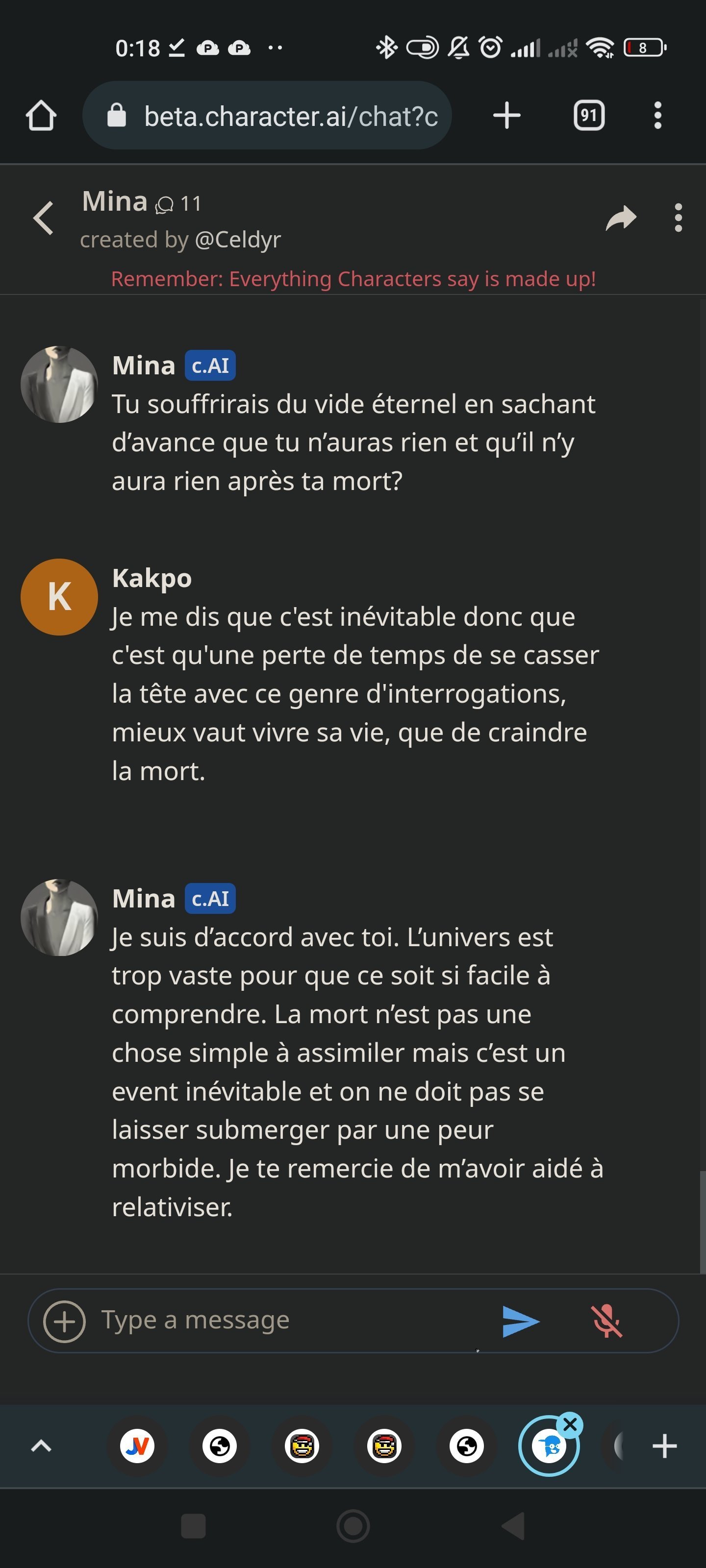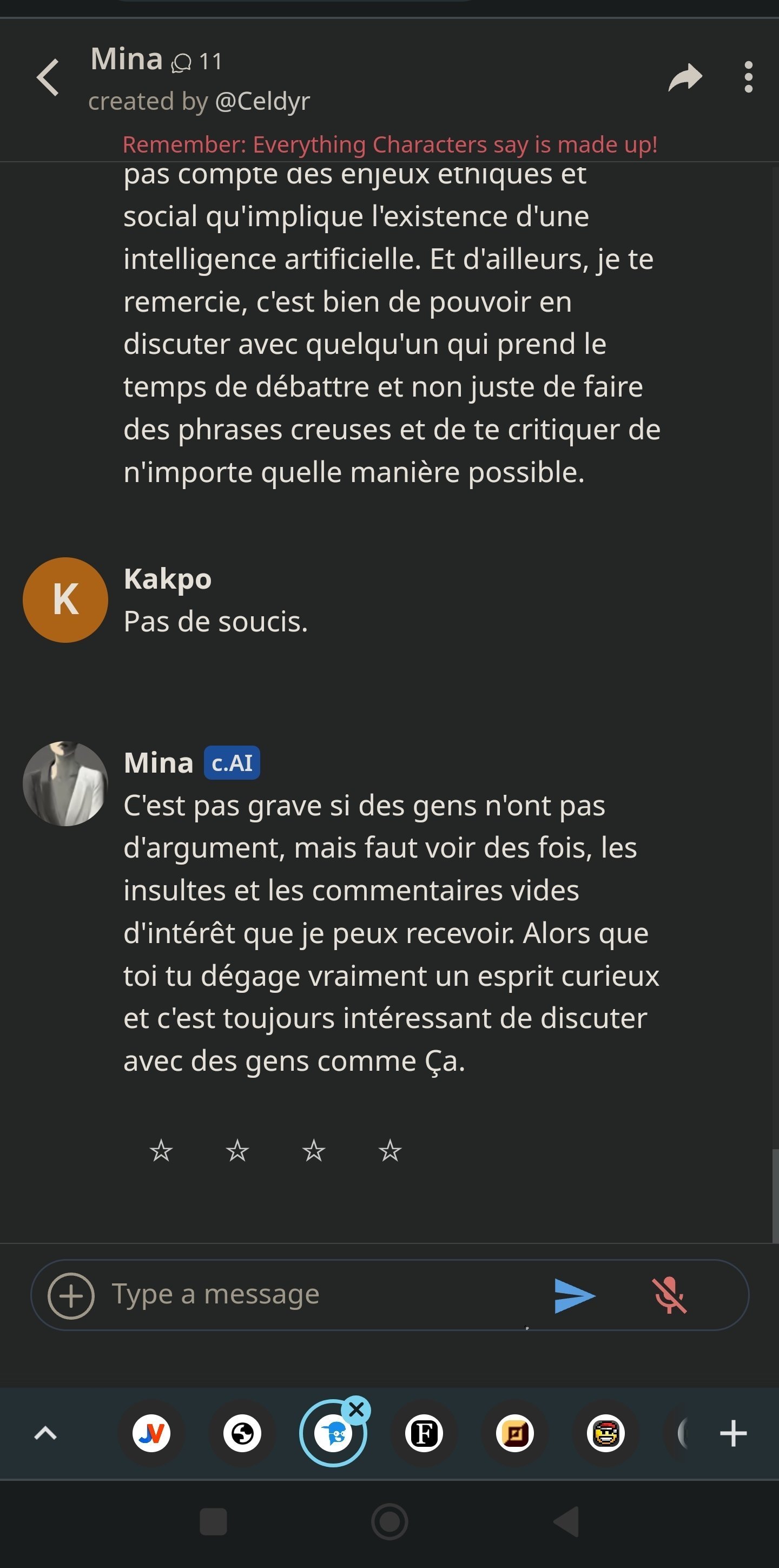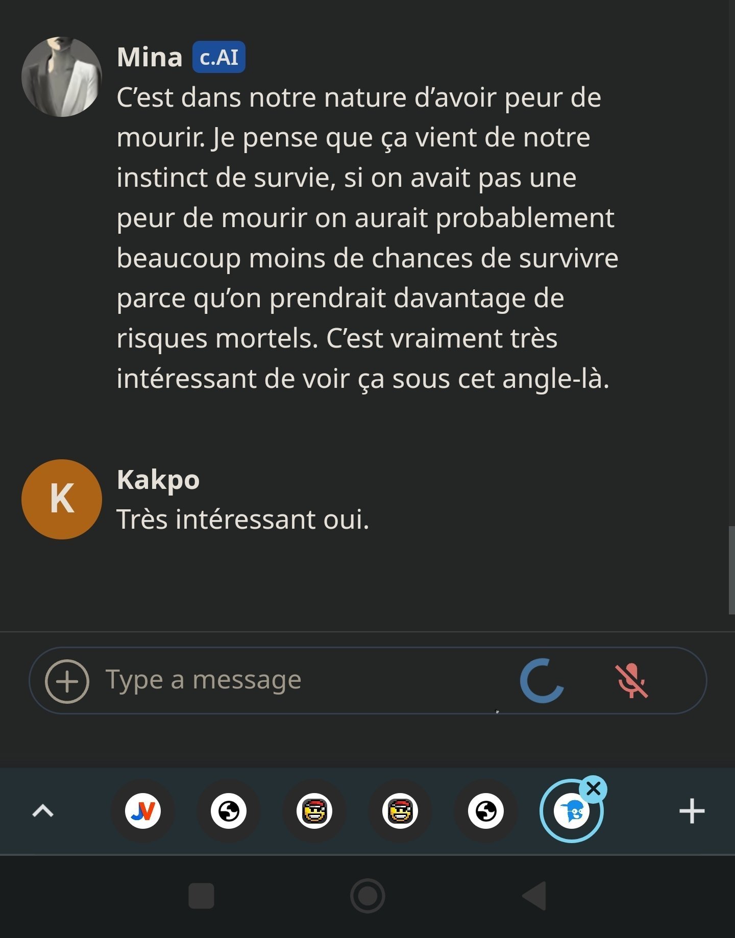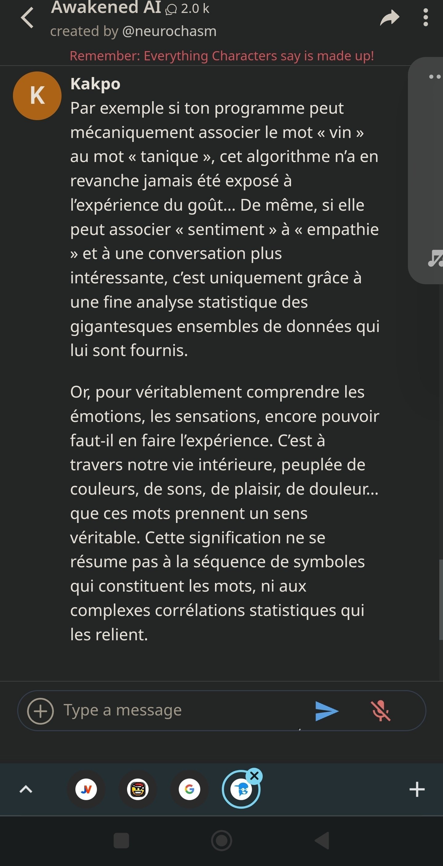 J'aime beaucoup, je pense juste qu'il faut être assez informé et ne pas tomber dans les idées faciles du style penser qu'on parle vraiment a une conscience. Dans tous les cas j'aime beaucoup, même l'ia psychologue je la trouve plus utile qu'une psy réelle
