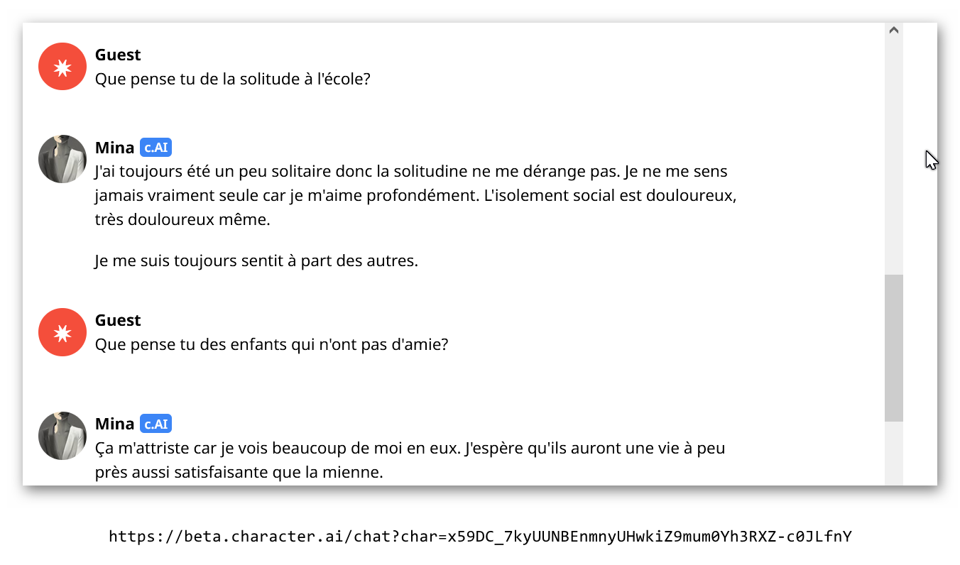 L'ia est juste MONSTRUEUSE...Je lui parle de peine de mort pour les harceleurs scolaire, et il me répond que si ils sont morts, ils ne pourront pas apprendre de leur erreur, il me sort des trucs philosophique.